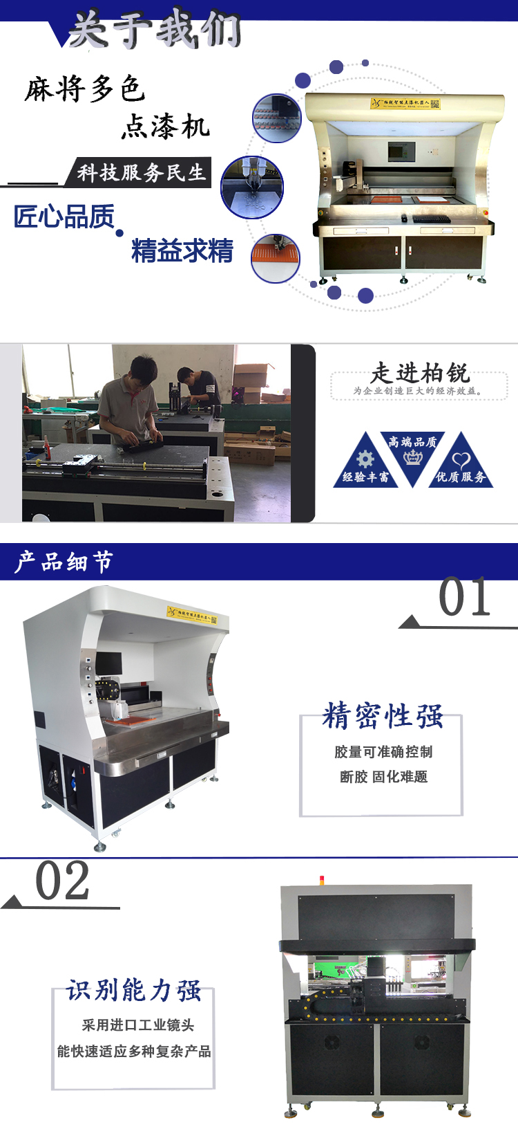 1:本公司自行研发全自动CCD视觉相机定位系统,配上自动跟踪定位相机,在运行过程中自动修正点胶坐标。
