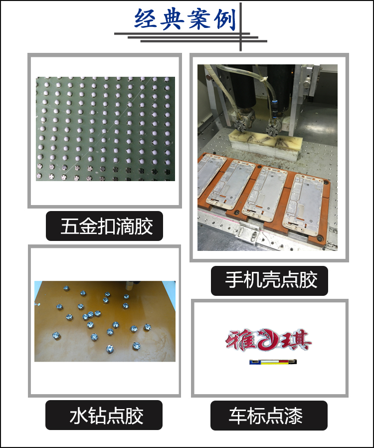 2:直接将产品放入料盘上滴胶,产品可任意摆放,360度全视觉定位。可以打点、走直线、画圆弧、不规则曲线功能。