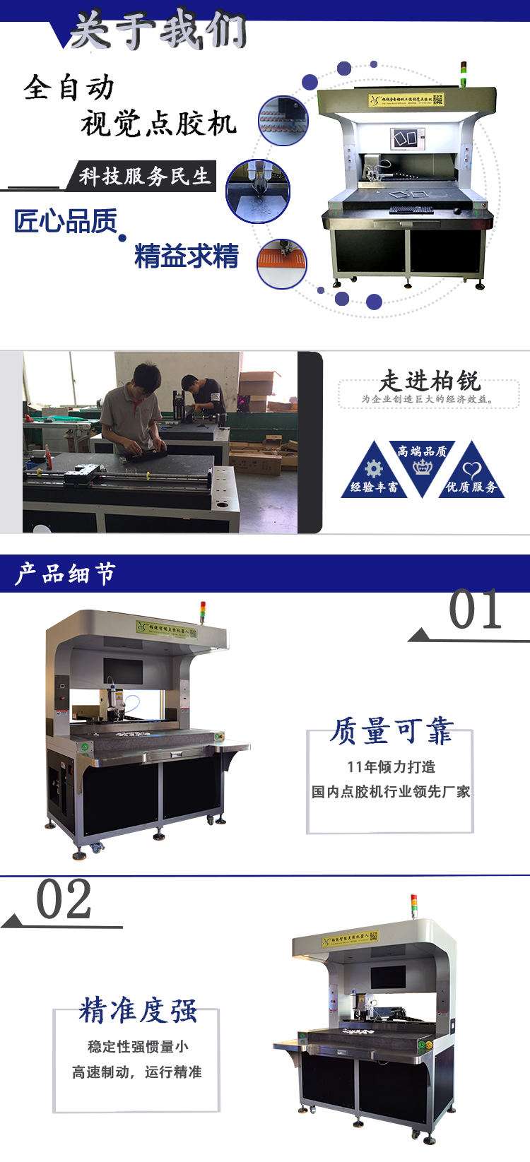 东莞点胶机厂家——东莞市柏锐智能科技有限公司,专业提供五金行业生产制造使用的ccd视觉点胶机、点漆机,对精度要求高的五金行业使用ccd双视觉定位,加工出来的产品精度,是一般的点胶机、点漆机无法比拟的。有了全自动点胶机点漆机可以节约几个人工做工,甚至节约一条生产线的加工消耗,产品定位和产品加工中使用的模具也可以解放出来,点胶机已经有了双视觉ccd定位,点胶工人也不需要在工作,全自动点胶机已经对每个产品的点胶进行了全自动化生产,如果我们对点胶机进行整体部署采用整体解决方案,通过流水线的模式,从生产产品原料到生产出来的产品就需要一个人即可完成。