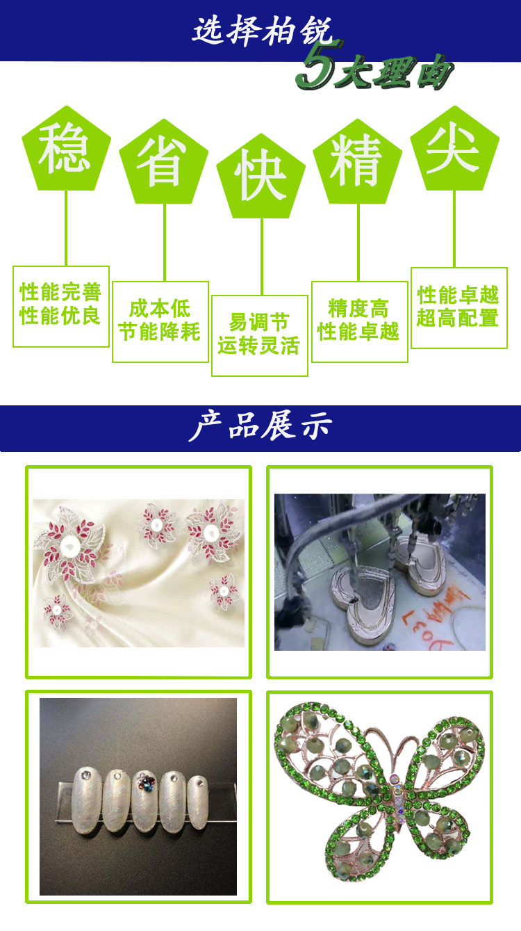 东莞市柏锐智能科技有限公司独立生产制造的高精度精密ccd视觉点胶机,应用于每个领域,标牌视觉点胶机,吊坠ccd视觉点胶机,窗花视觉点胶机,拉头点漆机,手机套灌胶机,手机壳点钻机,装饰品镶钻机,凡是需要相关工作性质的,都可以采用高效率,高精度的视觉点胶机和ccd视觉点钻机。